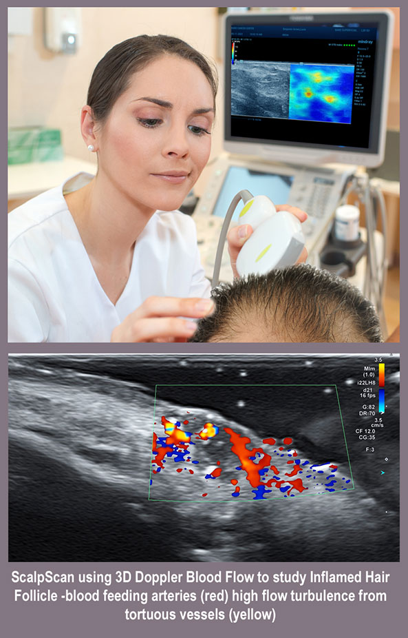 Hair transplants are considered minimally invasive procedures which often includes bleeding (due to its engagement with large blood vessels or aberrant arteries). Because of this, potential risks may include tapping into unsuspected skin conditions like cancers nearby or underneath- often identified with the use of clinical imaging. The term “scan and treat” is a research term that may also apply to clinical procedures. In the case of IMAGE GUIDANCE, the inclusion of real-time ultrasound monitoring adds a significant layer of safety and added confidence in the technician’s role-- forging a more expedient treatment pace from potential surprises.